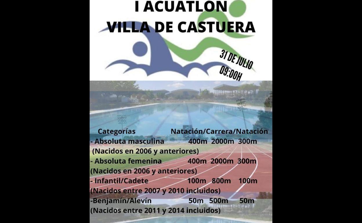 El próximo domingo 31 de julio, a partir de la nueve de la mañana, las instalaciones deportivas municipales albergarán el Acuatlón Villa de Castuera, organizado ... por el Servicio Municipal de Deportes y la empresa de dinamización deportiva Vital Sport La Serena.