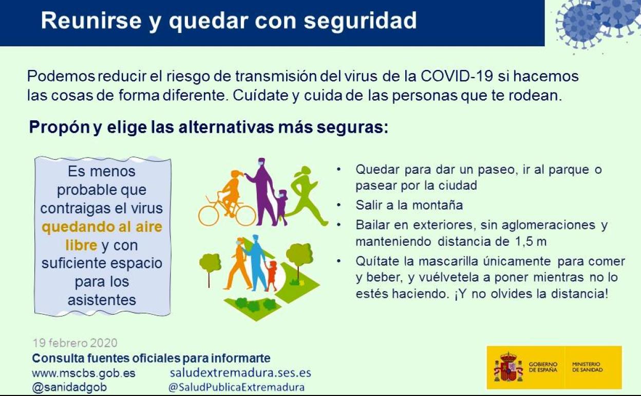 Además, se hace hincapié en que «las reuniones de familiares no convivientes y las fiestas son dos situaciones de especial riesgo, porque se suelen dar en entornos cerrados y mal ventilados y además muchas personas se confían y dejan de usar las mascarillas y de aplicar otras medidas preventivas».