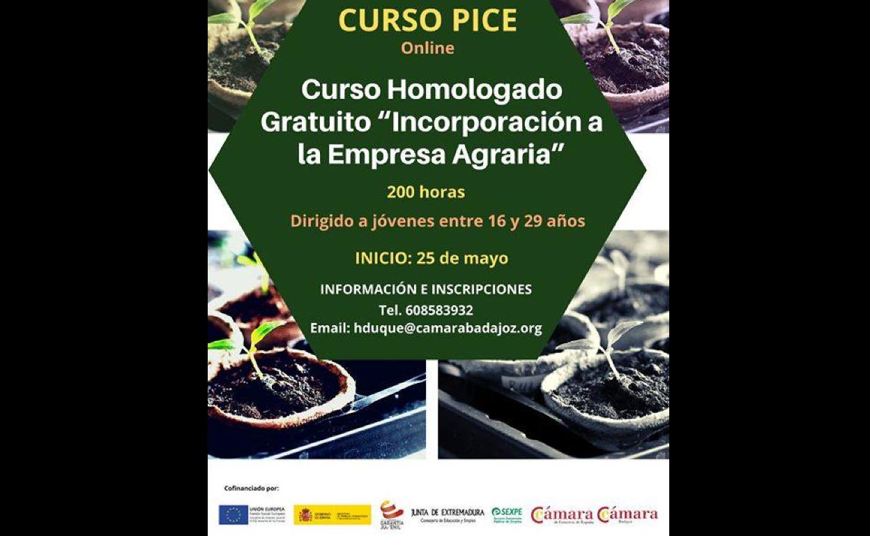 La Cámara de Comercio de Badajoz oferta un curso de 'Incorporación a la Empresa Agraria', que tendrá 200 horas de duración y será impartido mediante ... la modalidad Online. La fecha de inicio será el lunes 25 de mayo.