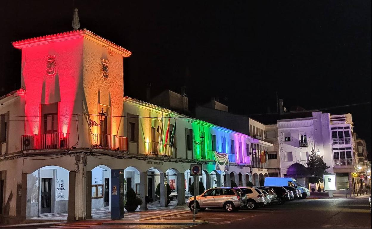 La bandera arcoíris que reúne a gays, lesbianas, transexuales, bisexuales, intersexuales… (colectivo LGTBI+), lució por primera vez en el balcón del Consistorio junto a las banderas de España, Extremadura y Europa en el año 2015