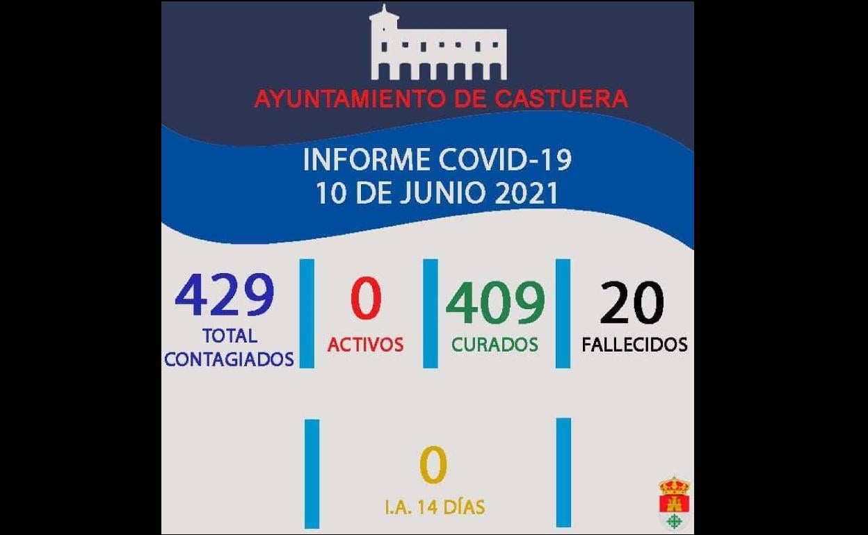 En el conjunto de la región, el jueves 10 de junio se comunicaron 41 casos positivos de COVID-19 confirmados. En los hospitales extremeños hay ingresadas 29 personas, 5 de ellas en UCI. En esta jornada no hay que lamentar fallecidos, por lo que el total de víctimas es de 1.766 desde el inicio de la pandemia. Se han dado 34 altas, lo que equivale a un total de 75.074 altas. La incidencia acumulada (IA) a 14 días en la región se sitúa en 67,62 y a los 7 días en 32,69.