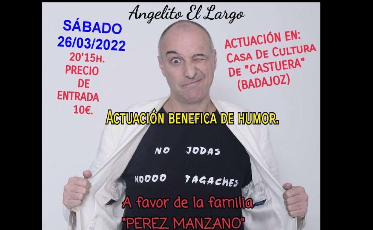 El espectáculo, a beneficio de esta familia que lo perdió todo en el incendio que arrasó su vivienda el pasado mes de enero, estará protagonizado por el humorista, imitador y contador de chistes, 'Angelito el Largo', y dará comienzo a las 20:15 horas en el auditorio del Centro Cultural.