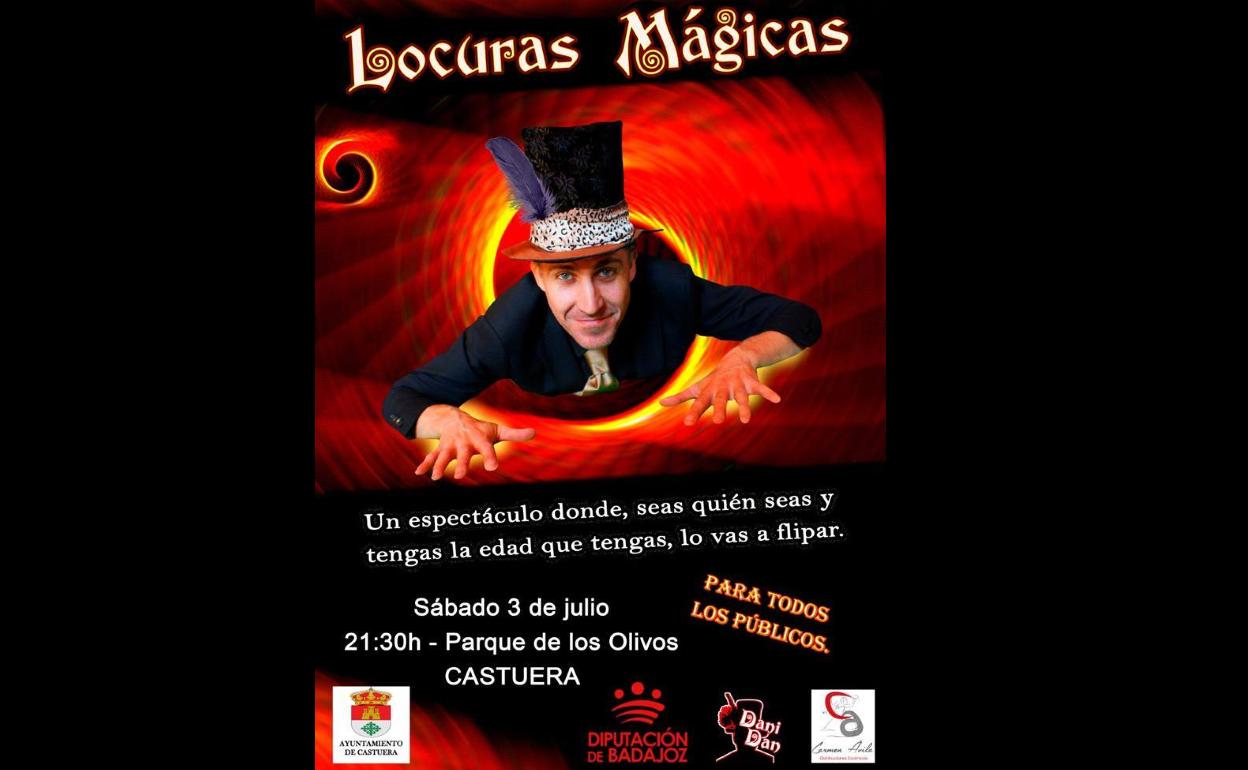 El parque de los Olivos de Castuera acogerá el próximo sábado día 3 de julio, a las 21:30 horas, el espectáculo 'Locuras Mágicas' que presenta el mago Dani Dan.